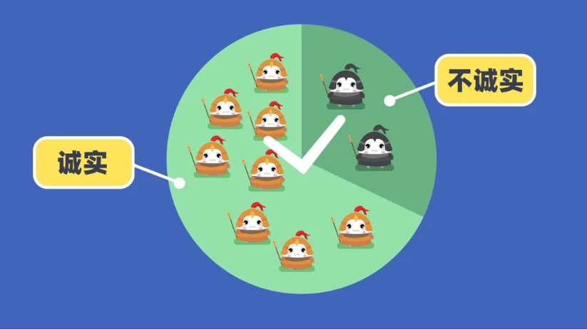面对分布式网络中无法完全避免的节点错误问题,研究者提出了“拜占庭容错”理论来解决拜占庭将军问题。该理论的核心在于:只要网络中诚实节点的数量超过总节点数的三分之二,即使存在少数不诚实节点(叛徒)发送虚假信息或干扰通信,整个系统依然能够达成一致的正确决策。这一机制的关键在于通过多数诚实节点的共识来稀释和过滤恶意信息的影响——当大部分节点传递的信息一致时,个别错误或伪造的信息将被系统判定为无效,从而确保整体决策不受干扰。