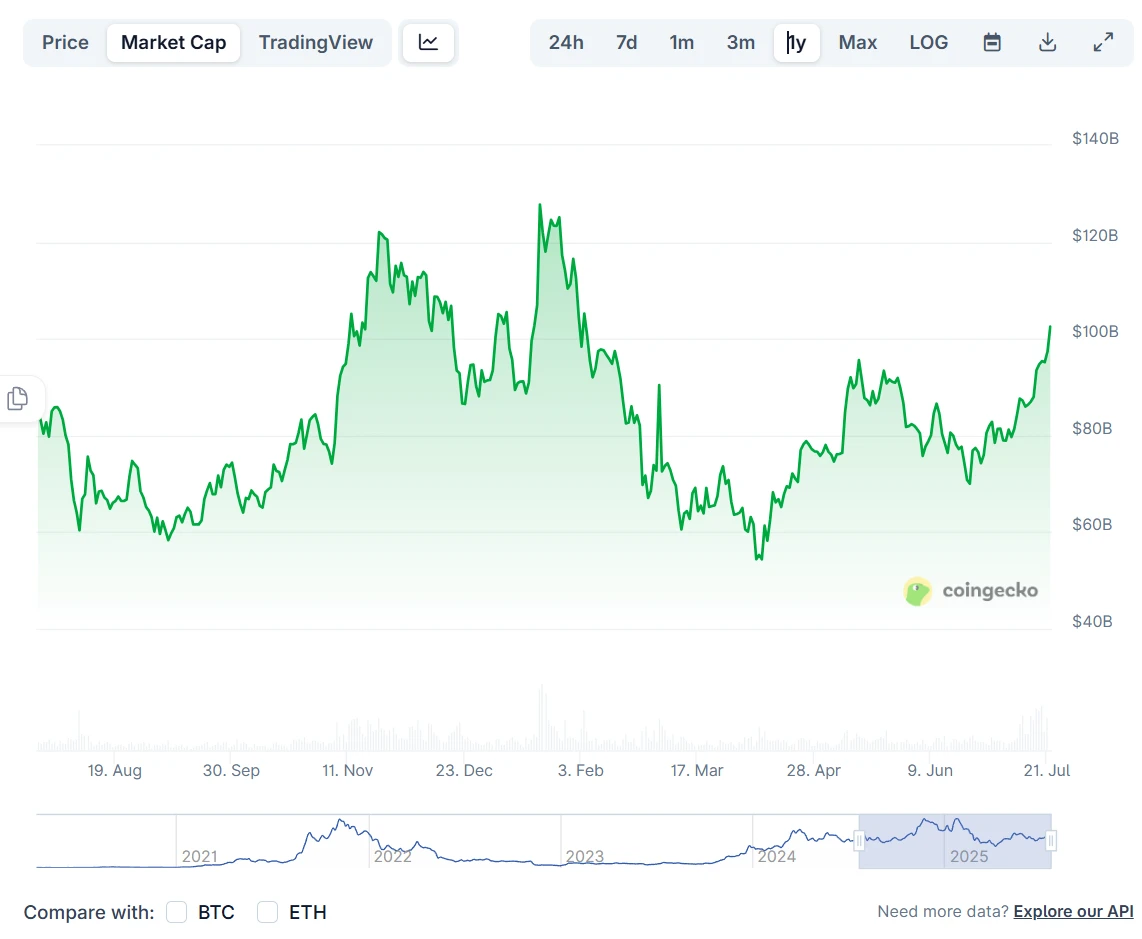 当前位置:首页 > 实时快讯 > 正文 SOL市值突破1000亿美元 创近五个月新高 实时快讯 作者:猎奇网 时间: 2025-07-21 17:46:59 浏览:40 7月21日,根据CoinGecko统计数据显示,SOL市值已突破1000亿美元关口,最新报102,719,395,387美元,达到近五个月高位。数据显示该代币当日价格涨幅达5.7%。 相关文章: 以太坊价格今晨突破3500美元关口,创近半年新高2025-07-18 07:56:11 SOL市值突破1000亿美元 创近五个月新高2025-07-21 17:46:59 全网以太坊合约持仓量7月28日突破600亿美元创历史新高2025-07-28 14:08:11 OKB价格创新高,市值突破50亿美元跻身加密货币前37位2025-08-22 10:08:25 加密货币总市值突破4万亿美元,9月10日报4.046万亿美元2025-09-10 22:40:44 USDT市值突破1700亿美元再创新高2025-09-13 17:50:46 PUMP代币价格创新高 市值突破26亿美元2025-09-14 08:57:27 SAROS价格突破0.42美元创历史新高 市值超10亿美元2025-09-15 09:59:36 谷歌股价创新高 总市值突破3万亿美元2025-09-15 22:42:03 BNB市值突破1330亿美元,超越瑞银集团创历史新高2025-09-17 12:00:47