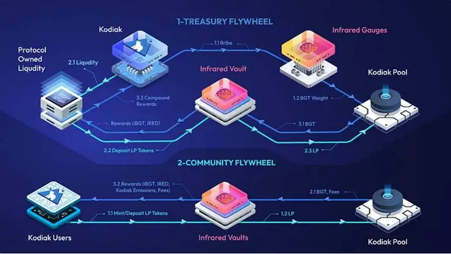 Infrared与Kodiak等协议的合作已经形成了次级生态系统,这种"流动性衍生品"体系正在重塑Berachain的价值流动方式。